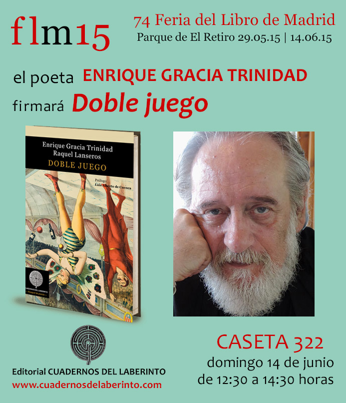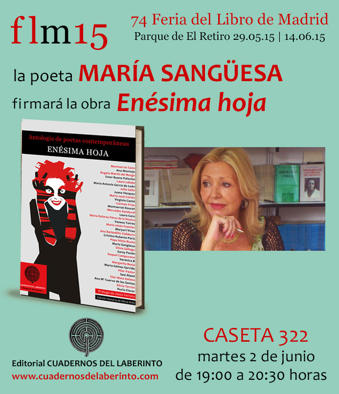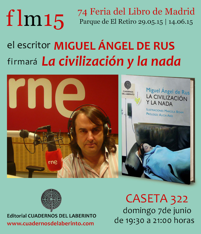 ![]() VIERNES 29 de mayo De 18 a 19:30 : MARIANA PESCI De 19:30 a 21:30: DANIEL PÉREZ MORALES SÁBADO 30 de mayo De 12:30 a 15:00 : JULIÁN GARVÍN De 18:00 a 19:00 : JESÚS CÁRDENAS De 19:00 a 21:00 : MONTSERRAT CANO DOMINGO 31 de mayo De 11:00 a 12:00 : ANDRÉS CARLOS LÓPEZ HERRERO De 12:00 a 14:00 : JESÚS HILARIO TUNDIDOR De 17:00 a 19:30 : ADOLFO YÁÑEZ De 19:30 a 21:30 : NIEVES ÁLVAREZ MARTÍN LUNES 1 de junio De 18:30 a 20:00 : LAURA LABAJO Y PEPÉ RAMOS MARTES 2 de junio De 19:00 a 20:30 : ANA MARÍA CUERVO DE LOS SANTOS y MARÍA SANGÜESA MIÉRCOLES 3 de junio De 18:30 a 20:00 : MARÍA JESÚS LEZA De 20:30 a 22:30 : DANIEL PÉREZ MORALES JUEVES 4 de junio De 12:00 a 14:00 : JESÚS HILARIO TUNDIDOR De 18:30 a 20:00 : MARTA GÓMEZ GARRIDO VIERNES 5 de junio De 18 a 19:30 : MARTÍN ORTEGA CARCELÉN De 19:30 a 21:30: JULIETA PELLICER SÁBADO 6 de junio De 11:15 a 12:30 : JUAN BESADA De 12:45 a 14:00 : JOAQUÍN LERA De 19:00 a 21:00 : JULIÁN IBÁÑEZ DOMINGO 7 de junio De 11:00 a 12:30 : JESÚS MARÍA NAVAS De 13:00 a 14:30 : MARÍA JOSÉ CORTÉS De 17:30 a 19:00 : MARÍA JESÚS LEZA De 19:30 a 21:00 : MIGUEL ÁNGEL DE RUS MIÉRCOLES 10 de junio De 19:00 a 21:00 : SILVIA GALLEGO JUEVES 11 de junio De 18:30 a 20:30 : ROCÍO PEÑALTA CALALÁN y MARTÍN ORTEGA CARCELÉN VIERNES 12 de junio De 12:30 a 14:00 : MARGARITA BORJA y MARÍA JESÚS FUENTES De 18:00 a 19:30 : MARÍA TORVISCO De 19:30 a 21:30 : CÉSAR DE LAS HERAS SÁBADO 13 de junio De 11:00 a 12:30 : JOSÉ LUIS GORDILLO De 13:00 a 14:30 : PALOMA SERRA De 17:00 a 21:30 : JULIO SANTIAGO y MILLS FOX EDGERTON DOMINGO 14 de junio De 11:00 a 12:30 : ESTER BUENO PALACIOS De 12:30 a 14:30 : ENRIQUE GRACIA TRINIDAD y RAQUEL LANSEROS De 17:30 a 19:00 : MANUEL PRIETO PRIETO De 19:30 a 21:00 : ÁNGELA MARTÍN DEL BURGO |