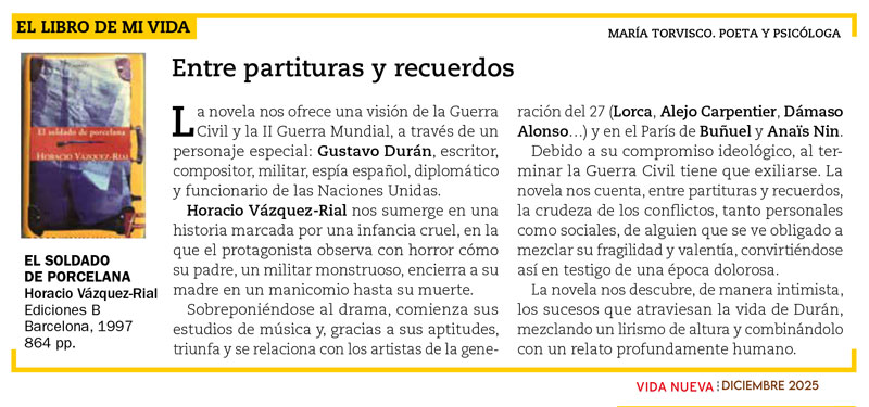 María Torvisco recomienda "El soldado de porcelana". Revista Vida Nueva. Diciembre, 2025