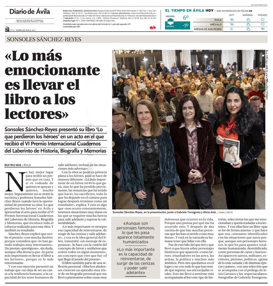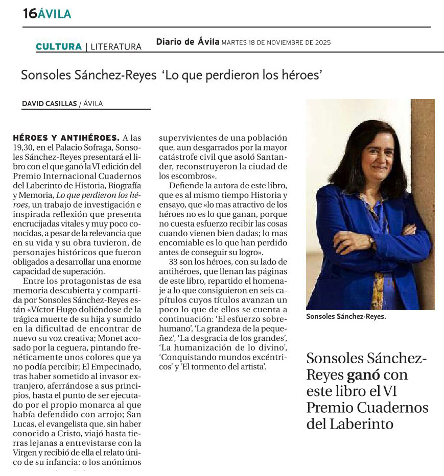 • Sonsoles Sánchez-Reyes gana el VI Premio Cuadernos del Laberinto de Historia. Por Tribuna Ávila